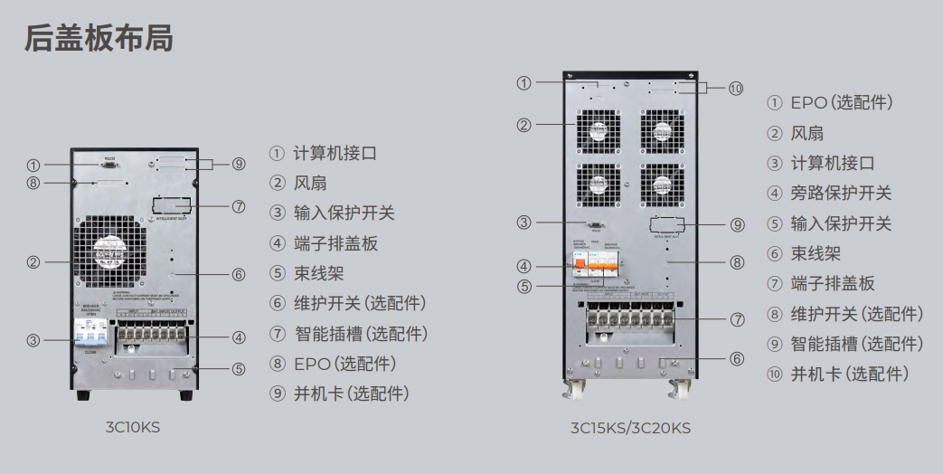 城堡系列新一代3C10KS ~ 3C20KS 传承上一代产品的优良品质,采用双转换纯在线式架构,外形美观,产品性能和产品可靠性大大提升。 对电网出现的断电、市电电压过高或过低、电压瞬间跌落或减幅震荡、 高压脉冲、电压波动、浪涌电压、谐波失真、杂波干扰、频率波动等状 况提供理想的解决方案,为用户负载提供安全可靠的电源保障。 城堡系列3C10KS ~ 3C20KS 是一款具有强大适应性、配置灵活的产品,采用先进的DSP数字控制技术,提供了非常丰富的可扩展功能, 用户可以根据需要灵活配置。城堡系列3C10-20K