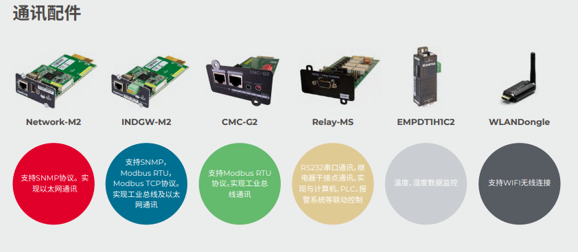 • 支持多种通讯监控方式,易于集成用户 动环监控系统